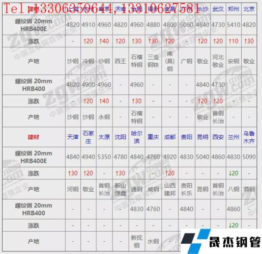 全國(guó)10個(gè)主要市場(chǎng)螺紋鋼 20mm HRB400平均價(jià)格4850元/噸,較上個(gè)交易日上調(diào)14元/噸。
